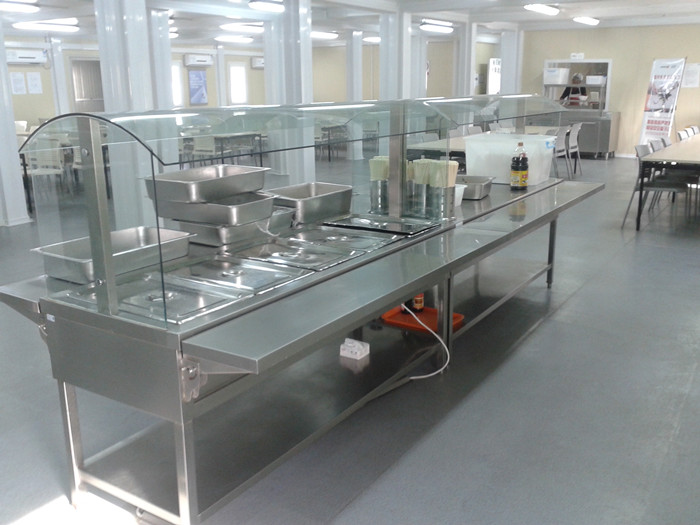 熱菜配菜區,主要根據零點或宴會的訂單,將加工好的原料,進行主配料配伍。該區的主要設備是切配操作臺和水池等。要求與烹調區緊密相連,配合方便。