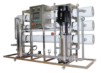大型凈水設備利用反滲透技術,將原水經過預處理的多介質過濾器、活性碳過濾器或軟化樹脂過濾器和精密過濾器之后,再通過水泵加壓,利用孔徑為1/10000μm的反滲透膜,使較高濃度的水變為低濃度水,同時將工業污染物、重金屬、細菌、病毒等大量混入水中的雜質絕大部分隔離,可以一次性去除掉原水中98%以上的離子。從而達到飲用規定的理化指標及衛生標準,產出至清至純的水,適合用水需求大的,例如酒店、大型食堂、工廠等場所。