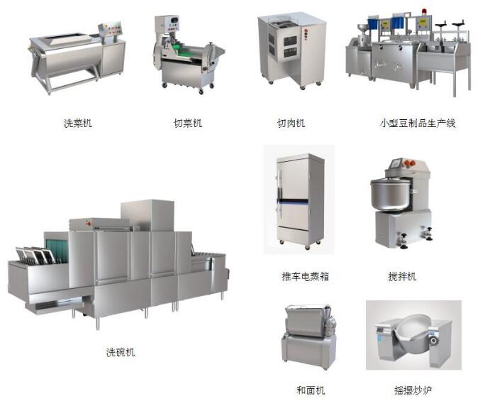 同時我們配置專業設備,提高生產效率,降低勞動強度,節約人力成本。洗菜機、切菜機、切肉機、豆腐機、和面機、攪拌機、推車電蒸箱、搖擺炒爐、自動炒菜機、洗碗機等,可以說廚房里幾乎每一項工作都有相應的專業設備來代替人工,滿足您的生產需求,我們也會根據客戶需求和實際情況推薦適合的設備。